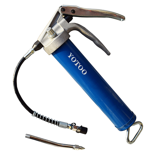 YOTOO Heavy Duty Pistol Grip Grease Gun with Whip Hose and Rigid Pipe is designed for 3-Way Grease Loading: Standard 16 oz Cartridges, Bulk Suction, and Filler / Dispenser Pump. It features jam-proof handle return mechanism. Rugged one piece head casting offers extra strength. Pistol grip handle for easily use by one hand operation.